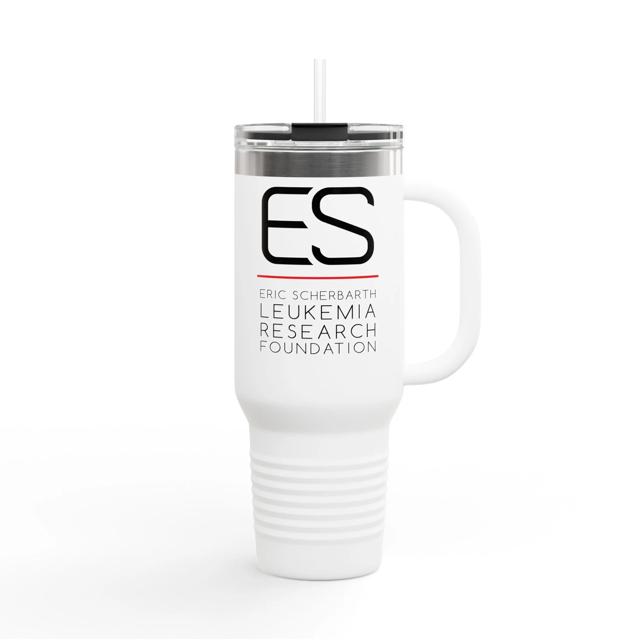 Stay hydrated on-the-go with this 40oz Insulated Travel Mug featuring the Eric Scherbarth Leukemia Research Foundation Logo. Ideal for long trips, outdoor activities, and everyday use. Perfect for those who support leukemia research and need a large capacity tumbler.