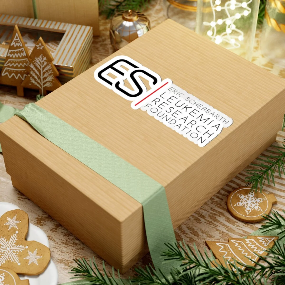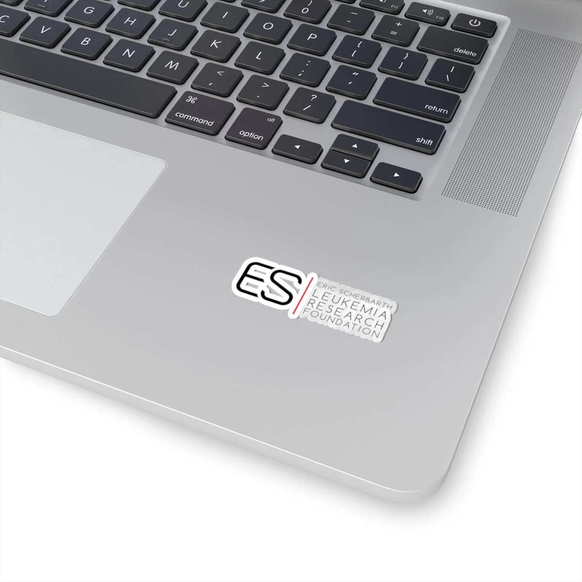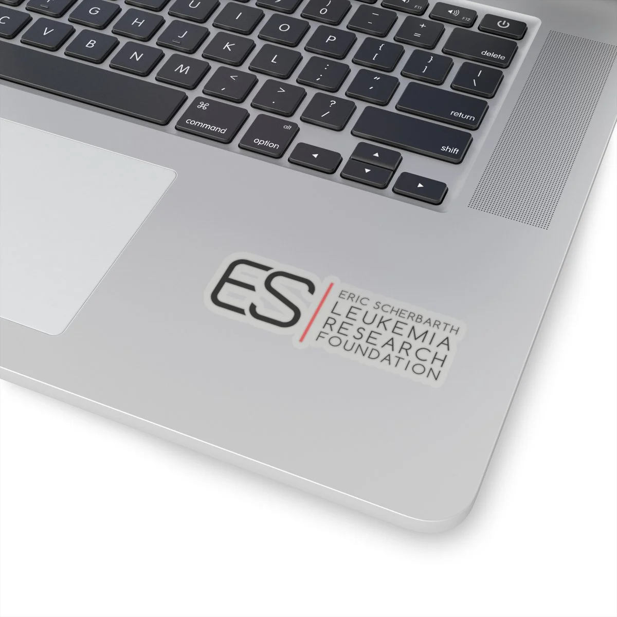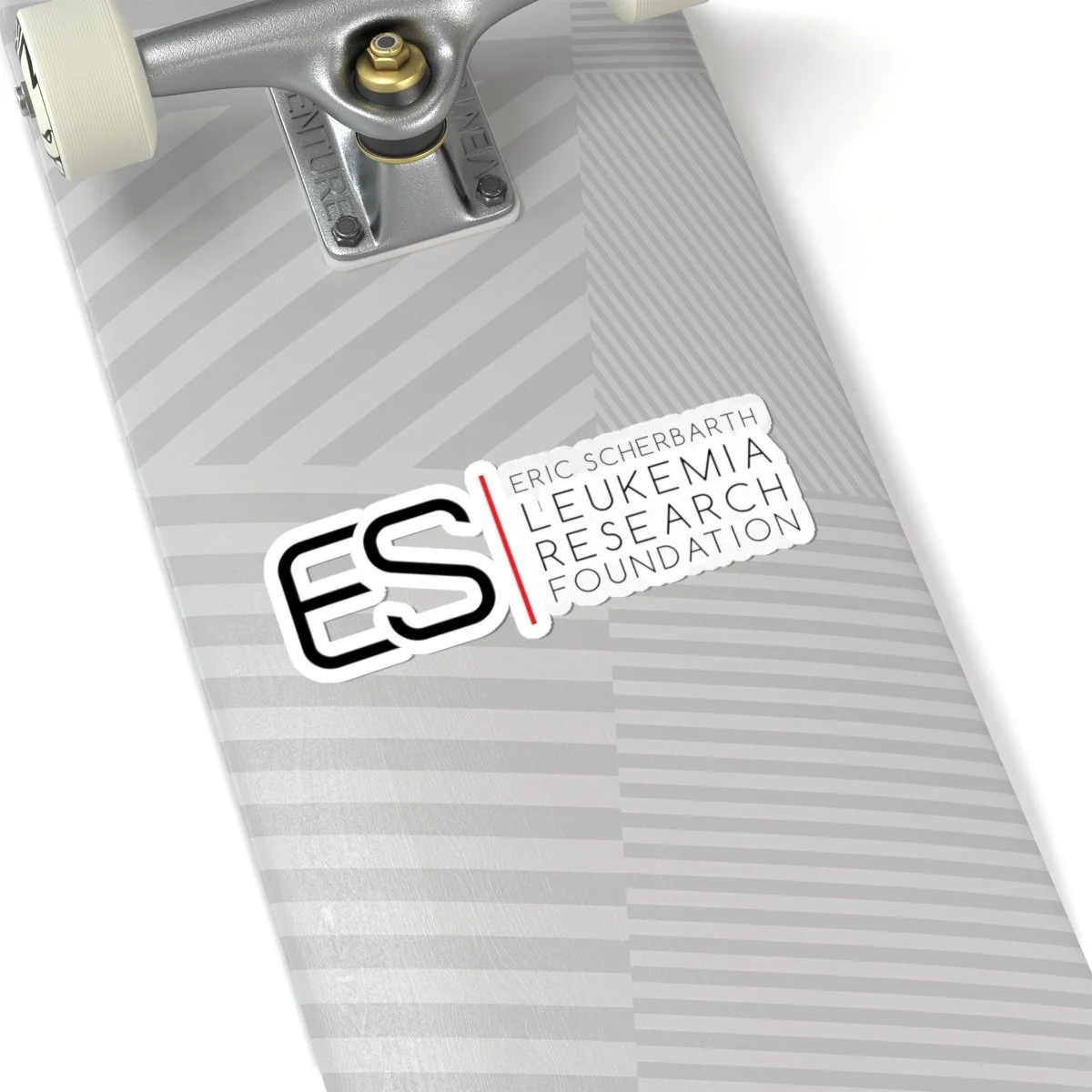 Kiss Cut Sticker featuring The Eric Scherbarth Leukemia Research Foundation Logo. This sticker provides a glossy finish with vibrant colors, perfect for smooth flat surfaces like laptops, journals, and windows. Relevant for supporters of the foundation, ideal for fundraising events, awareness campaigns, and charitable occasions.